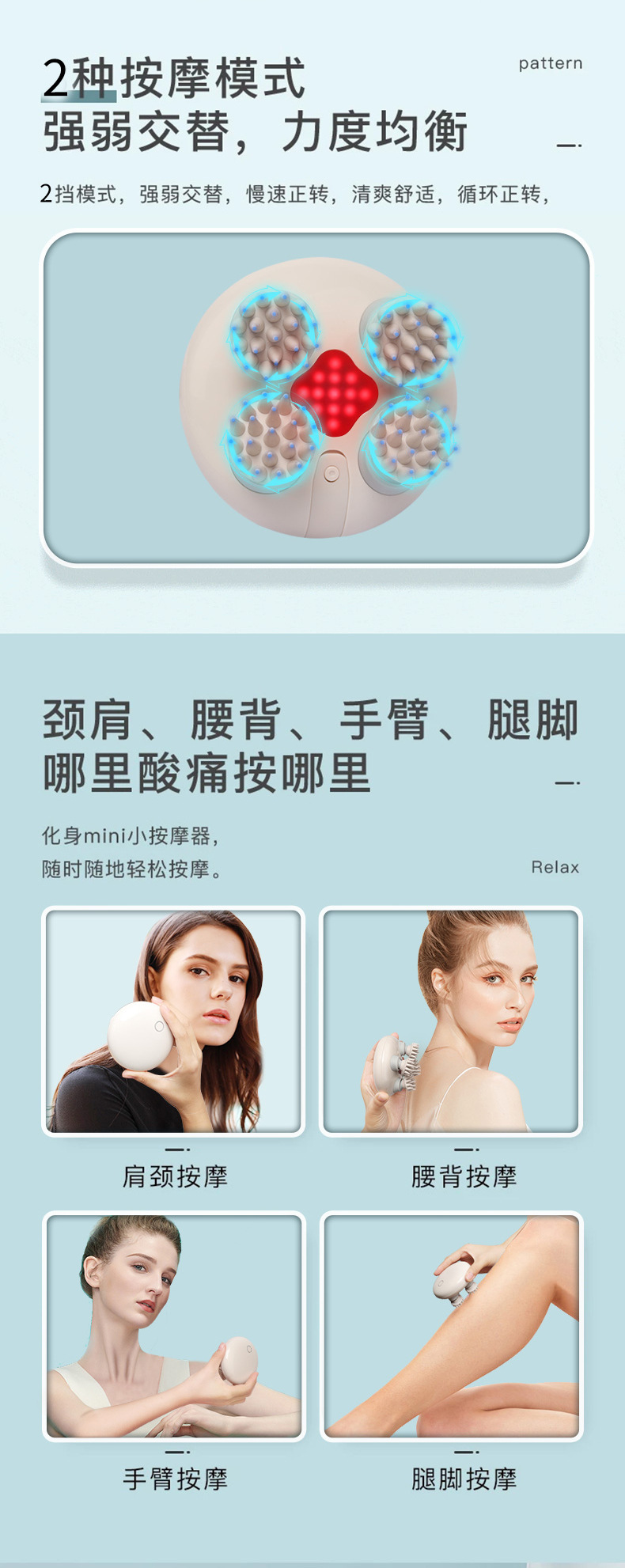 紅光療法四頭按摩防水器電動按摩頭按摩