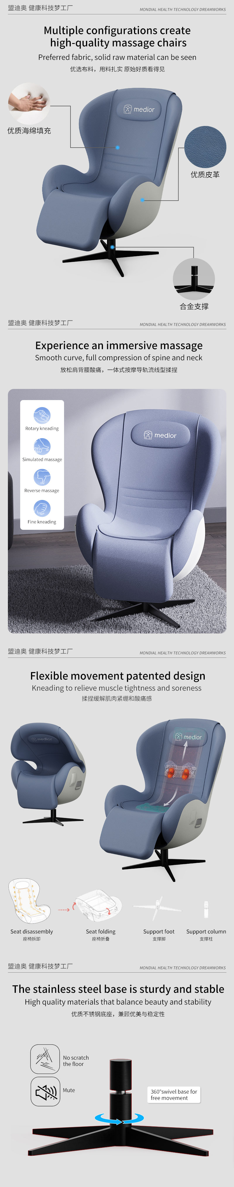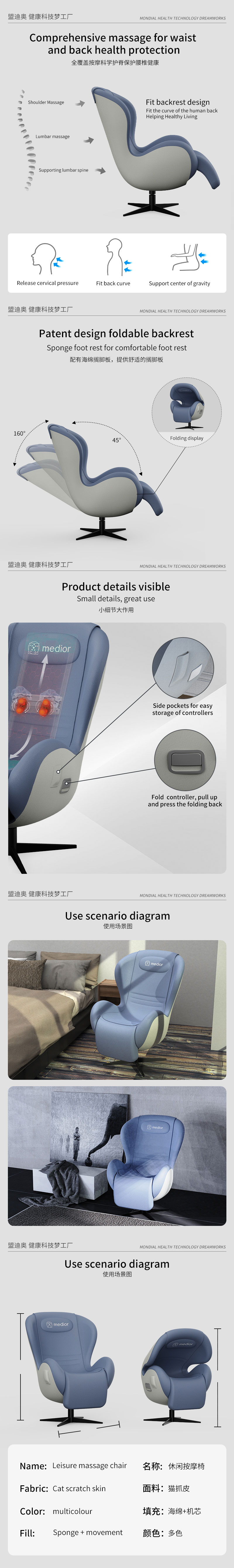 柔性休閑按摩椅 可坐可躺90-160°角度可調(diào)節(jié)仿真人揉捏按摩手法舒緩腰背 多功能遙控器一鍵啟動 按摩行程95cm,從肩膀到小腿360°旋轉(zhuǎn)可拆卸披風 方便清洗 獨家專利柔性機芯 超薄可折疊 包裝體積小