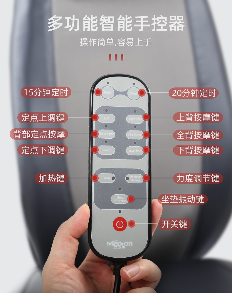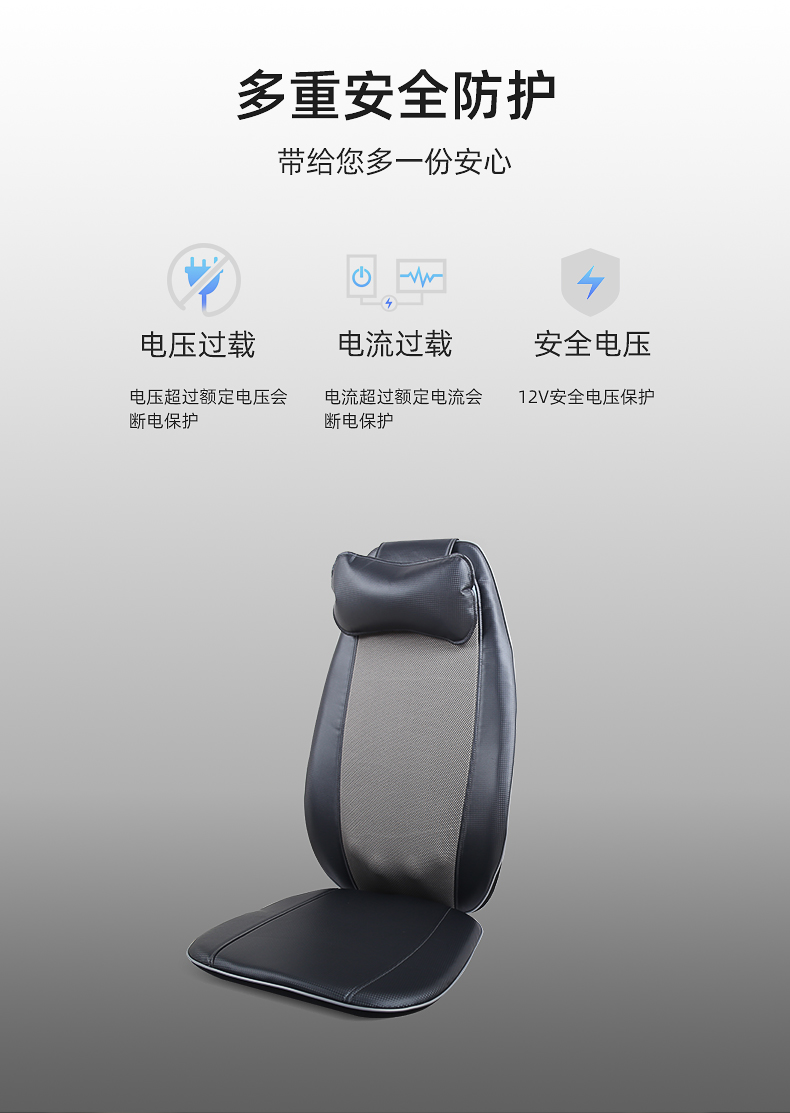背部揉捏功能,三檔按摩力度可供選擇,背部定點(diǎn)按摩