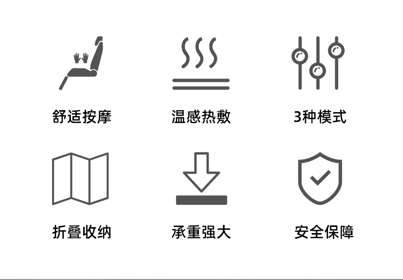 3.氣壓按摩:3檔可調(diào):腰部雙氣袋,大氣泵,腿部雙氣袋按摩,坐墊中間兩側(cè)3D按摩