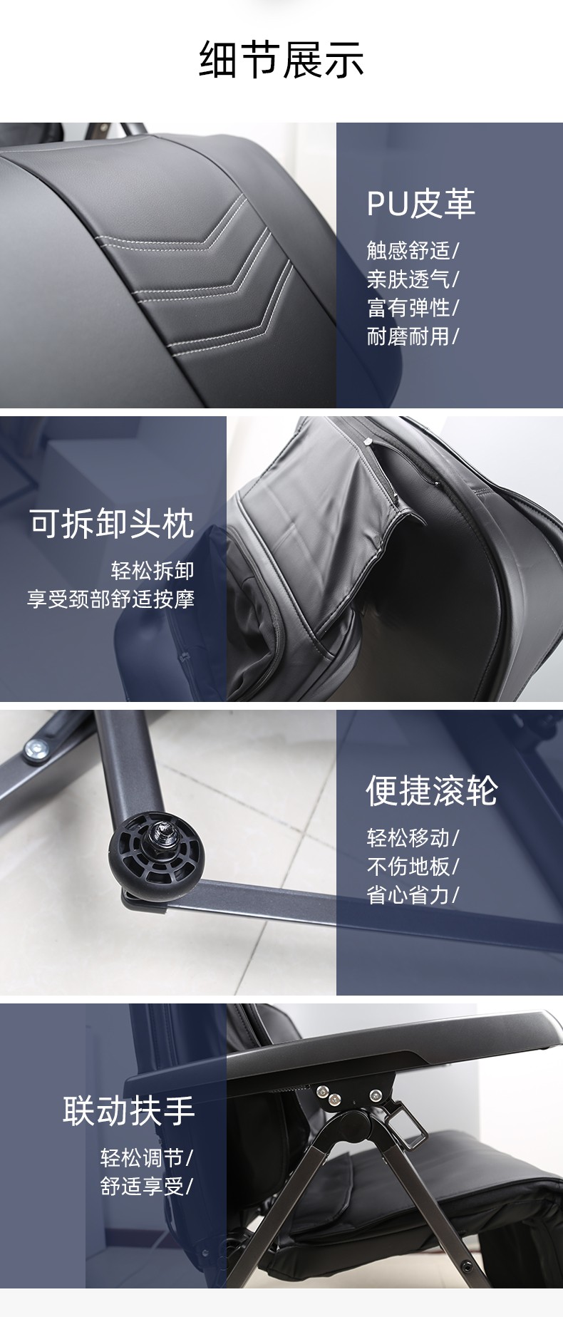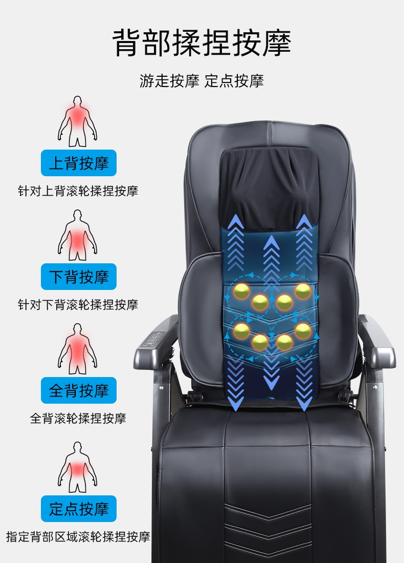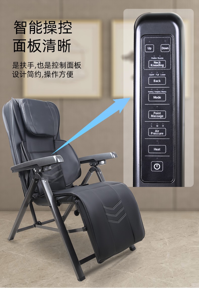 折疊式按摩椅1.頸部:創(chuàng)新壓肩按摩,正反轉(zhuǎn)揉捏,上下可調(diào)節(jié)高矮適應(yīng)不同人。