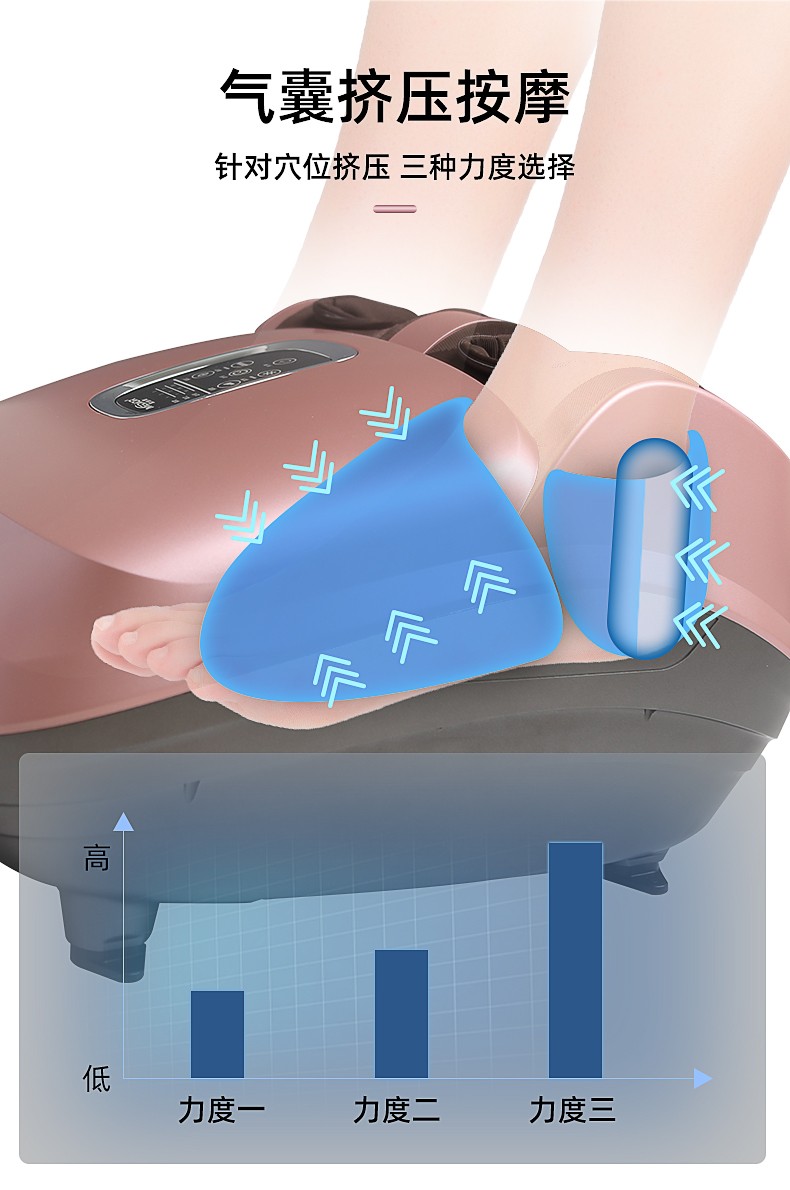 滾輪按壓(腳趾)、刮痧(腳弓)、捶打(腳后跟)按摩 (多模式,多強(qiáng)度);